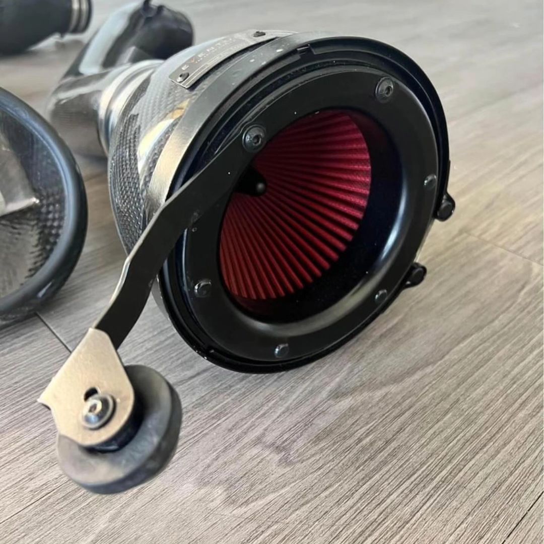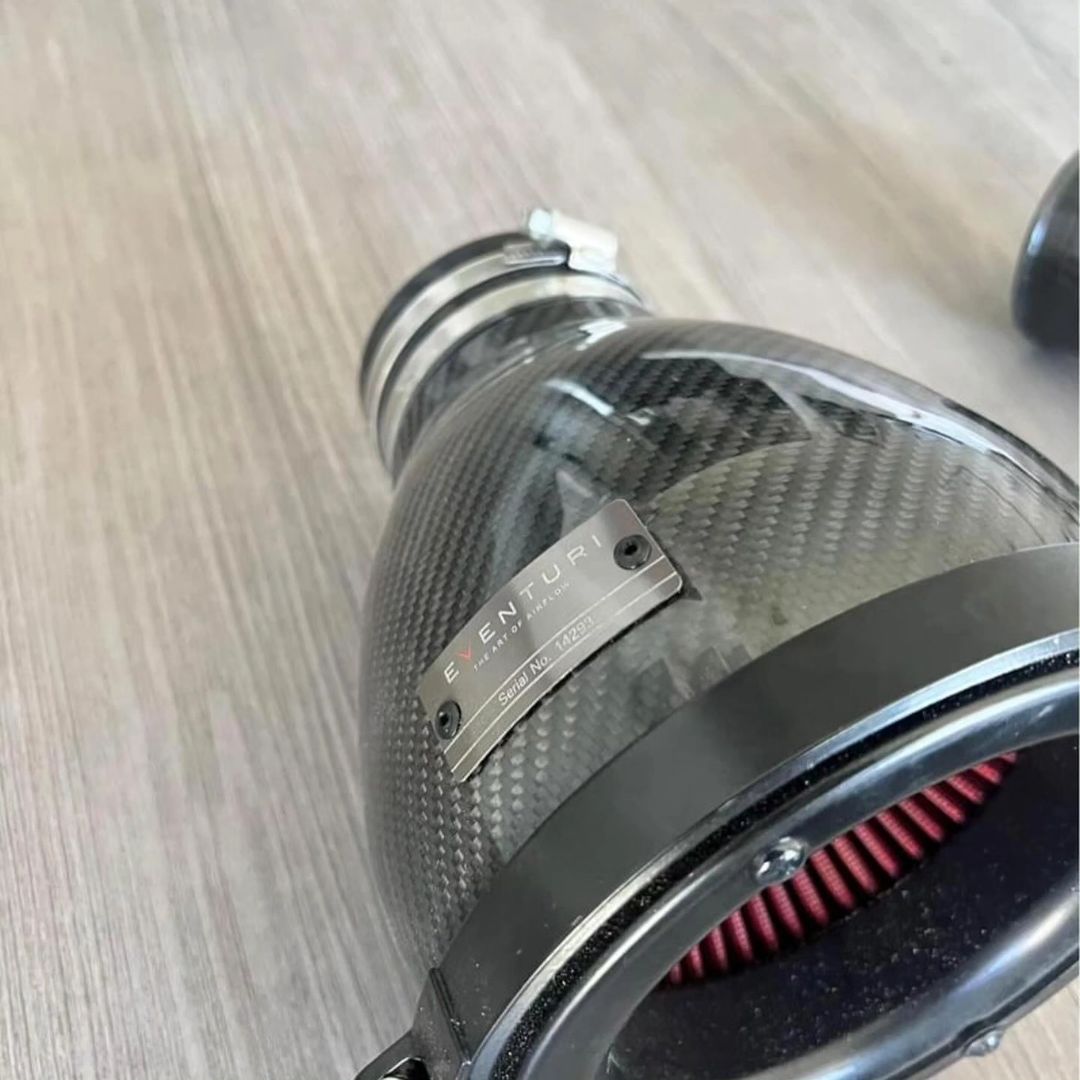 The Eventuri Complete Carbon Fiber Intake Kit for the BMW F90 M5 delivers proven performance gains, sharper throttle response, and enhanced turbo sound. Engineered with precision airflow technology, this intake system maximizes efficiency while adding an aggressive carbon fiber look under the hood.