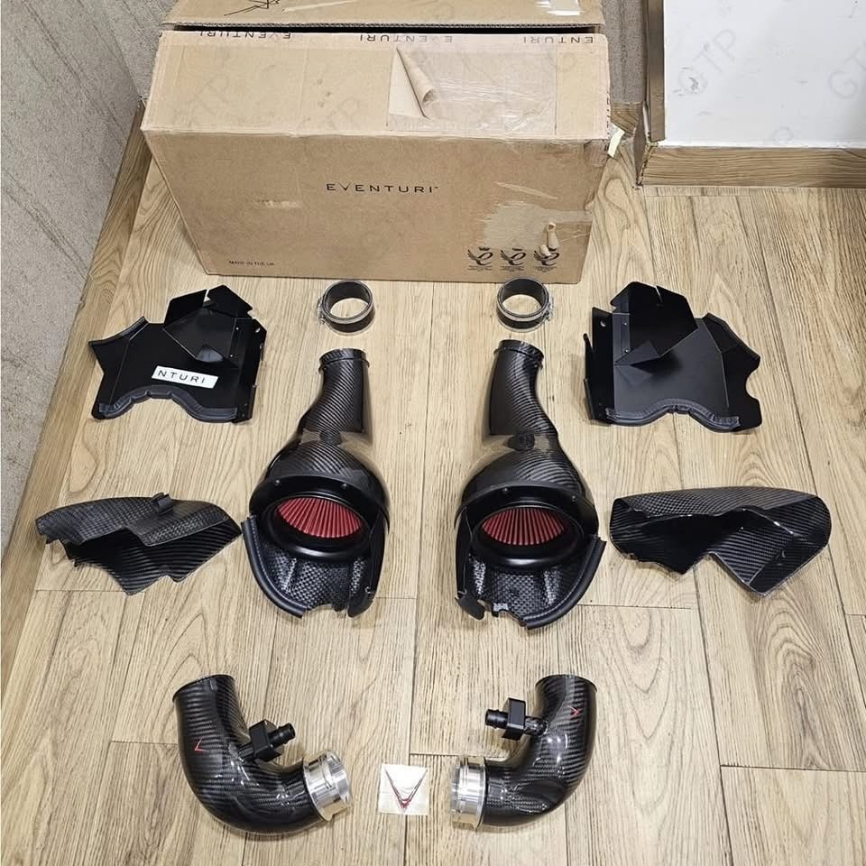 The Eventuri Complete Carbon Fiber Intake Kit for the BMW F90 M5 delivers proven performance gains, sharper throttle response, and enhanced turbo sound. Engineered with precision airflow technology, this intake system maximizes efficiency while adding an aggressive carbon fiber look under the hood.