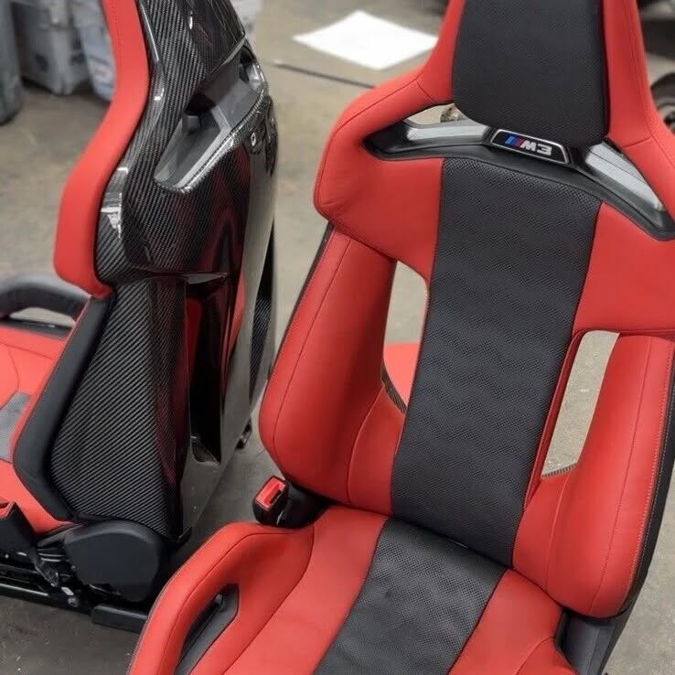 For sale: OEM BMW G80 M3 carbon bucket seats in Fiona Red leather. Complete interior set in excellent condition. Premium upgrade for $10,000.